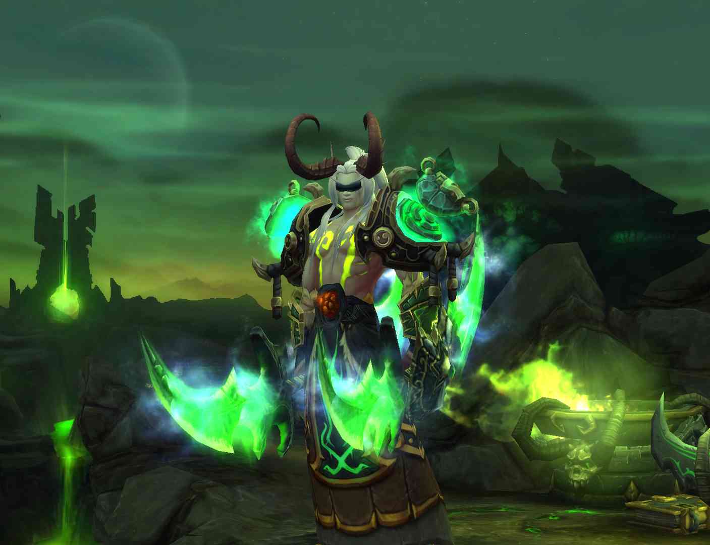 此套幻化的最大难点是埃辛诺斯战刃(俗称双刀),TBC时代无数玩家战士、潜行者玩家为之着迷,有毅力的小伙伴可以多号单刷黑庙,找到合适的CD公益人士快捷单刷,或者等待TBC漫游周开启小红手之旅。