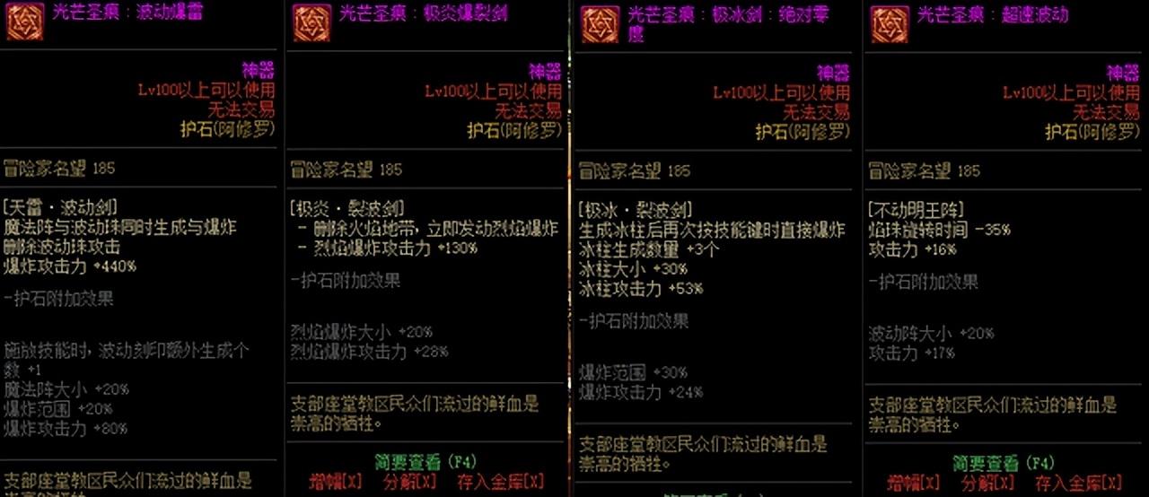 武器:单属性强化(最高15)、全属性强化(最高13)上衣:智力+独立攻击力(最高70+40)下装:智力+独立攻击力(最高70+40)头肩:春节套技能宝珠腰带:国庆技能宝珠、智力(最高50)鞋子:国庆技能宝珠、智力(最高50)、独立攻击力(最高44)首饰:单属性强化(最高30)左槽:所有属性强化+12(春节礼包)右槽:全属性强化(最高30)耳环:四维(最高150)