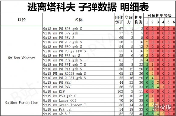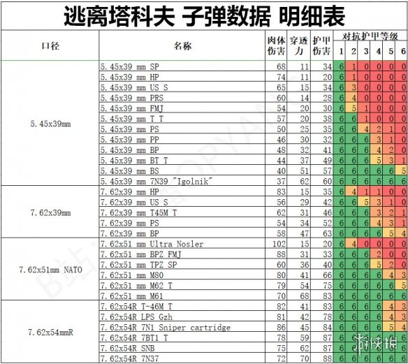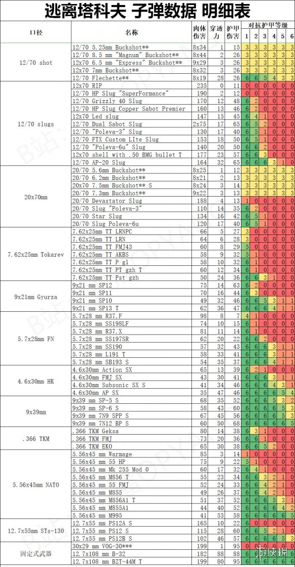 逃离塔科夫子弹伤害怎么样(全子弹伤害数据说明)