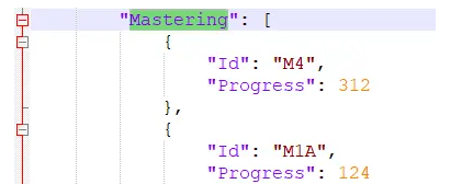 修改武器专精等级需要在地图中使用过武器才会出现,搜索 mastering ,修改对应的经验即可修改对应武器类别的专精等级。