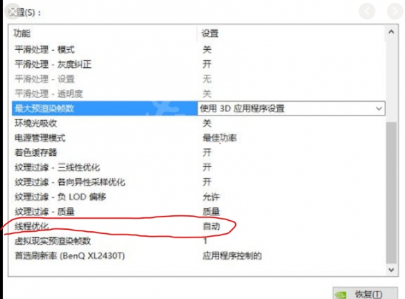 确保Nvidia控制面板内的线程优化设置为-自动。