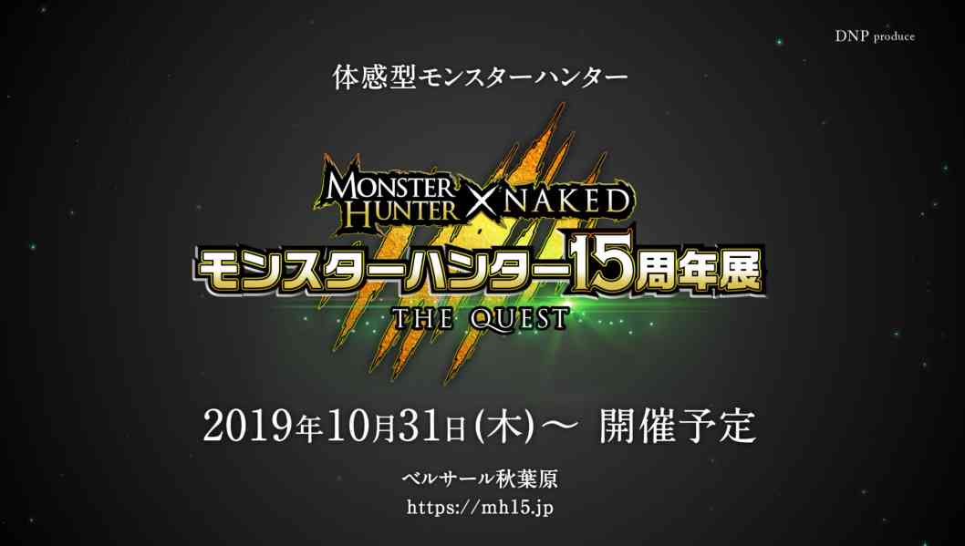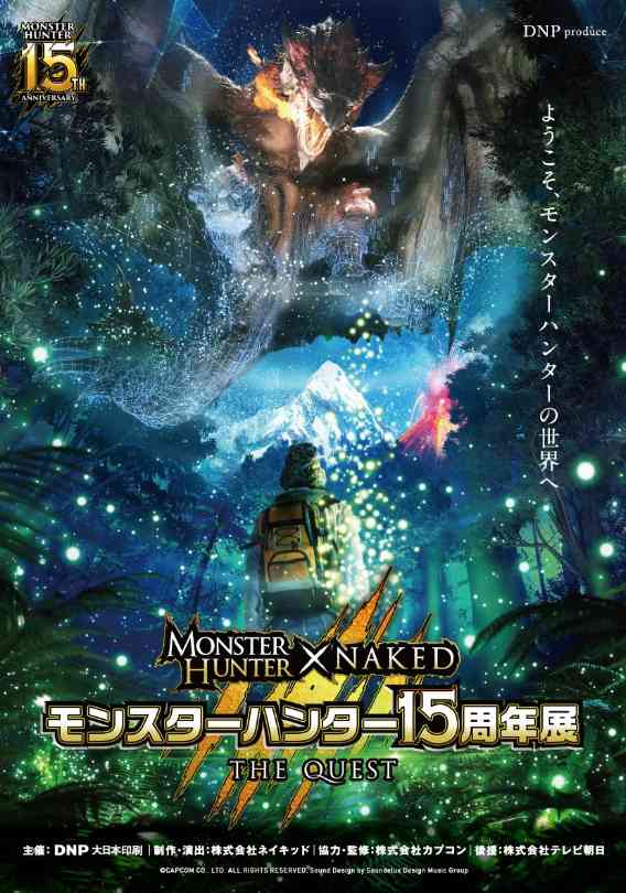 由DNP主办,CAPCOM联手空间创意公司NAKED推出怪物猎人15周年体感型企划展——『DNP Produce MONSTER HUNTER × NAKED 「怪物猎人15周年展」 - THE QUEST -』将于10月31日~11月12日在“ベルサール秋葉原”展出! 届时会场将通过人工艺术布景、影像以及投影等内容,再现出《怪物猎人》系列中的标志性大陆场景,到场者仿佛亲身融入游戏中的世界观,体验怪物们的存在和压迫感,会场最深处还可体验到大型怪物登场的4D演出!