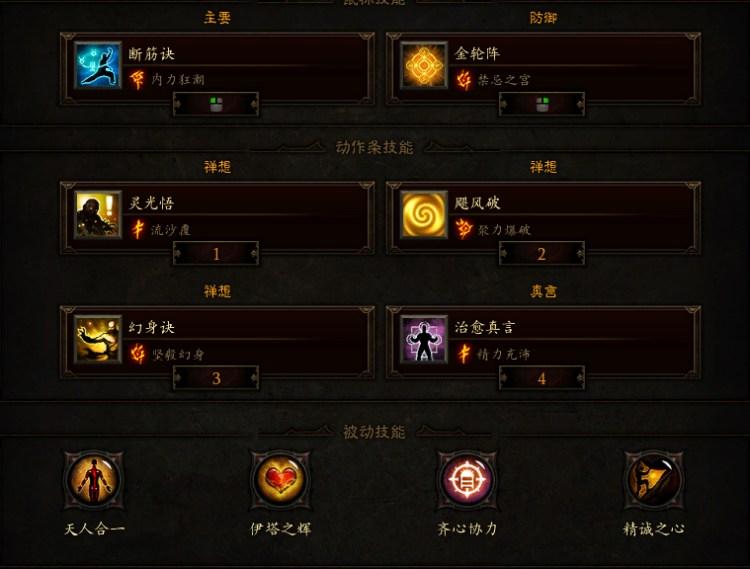 到此,技能bd已经说完了,接下来就是基本操作手法。打拳奶操作并无特别需要注意之处,致盲奶由于没有打拳技能很多人刚接触会不适应,实际上只要小键盘卡住黑人和致盲,手动释放飓风破和金轮阵。至于盾和幻身,盾在团队可能受到高伤害的时候刷,幻身在影响聚怪的时候使用(只有速刷不穿粗糙鞋的时候可以将幻身爆掉)。有一点需要特别注意:卡小键盘的技能,当你按住某个键不放时是不会自动施放的。举个例子黑人和致盲用小键盘卡住了,平时站城里是一到cd就用,但是一旦你按住鼠标左键不放走路,致盲即使到cd也不会自动放。解决办法也很简单,养成习惯一下下的按强制移动键走位即可。