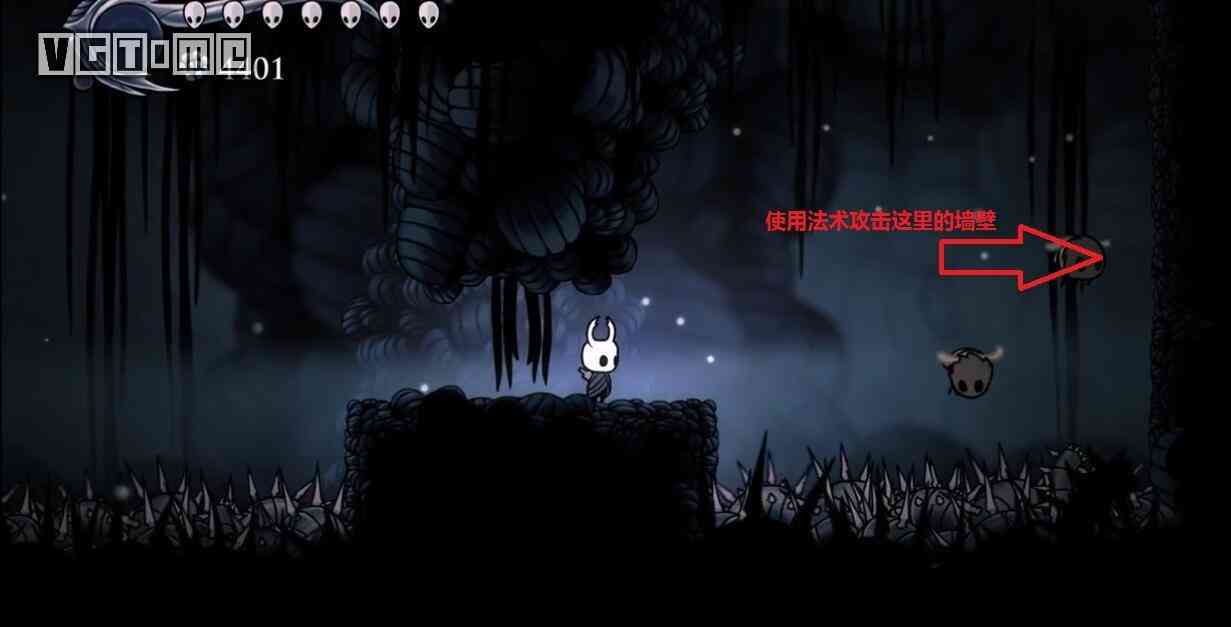 沿着路线先到1处,此处是个近路,但墙壁无法用普通攻击破坏,需要勾引一个肥仔黄蜂(用身体撞的那种)撞到墙上才能破坏。