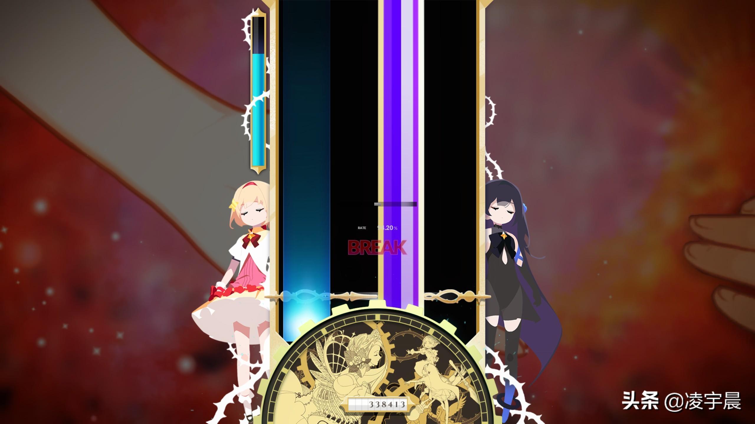 每个曲包依旧拥有一套菜单UI界面与BGM,以及游玩主题面板与音符NOTE。前者对比起来没有太大的差异,都是TECHNIKA那种比较有年代感的设计与色彩风格,个人喜好度一般。而游玩主题面板与音符Note的方面,无论是观感还是游玩手感都是TECHNIKA 3附带的Alice主题面板好,两位萌妹子依附在面板左右,底盘用了此轮形态显示,相当对胃口,Note也不花,看着比较舒服。虽然TECHNIKA 2提供的像素风格主题面板也是我的菜,但长条音符NOTE的光渐变实在看着难受,尤其是打阶梯段的时候眼非常花,TECHNIKA 1提供的Son of sun主题面板更是一般,基本用不上。