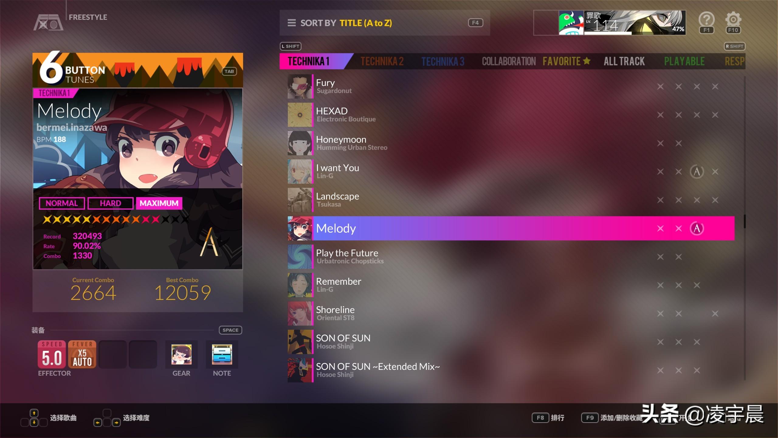 这次TECHNIKA系列每个曲包提供的歌曲数量都在二十首以上,数量方面是很充足的。个人觉得很好听的歌曲有Melody、I want You、Dream of Winds、Sweet Dream、Ghost等,还有些比较不错的歌曲,就不一一列举了。谱面难度的话,4BSC难度设计还是有瑕疵,5B乃至6B就更不用说了,对于高玩而言还是欠缺挑战性,相比起GC包的SC难度有着较为明显的差距。