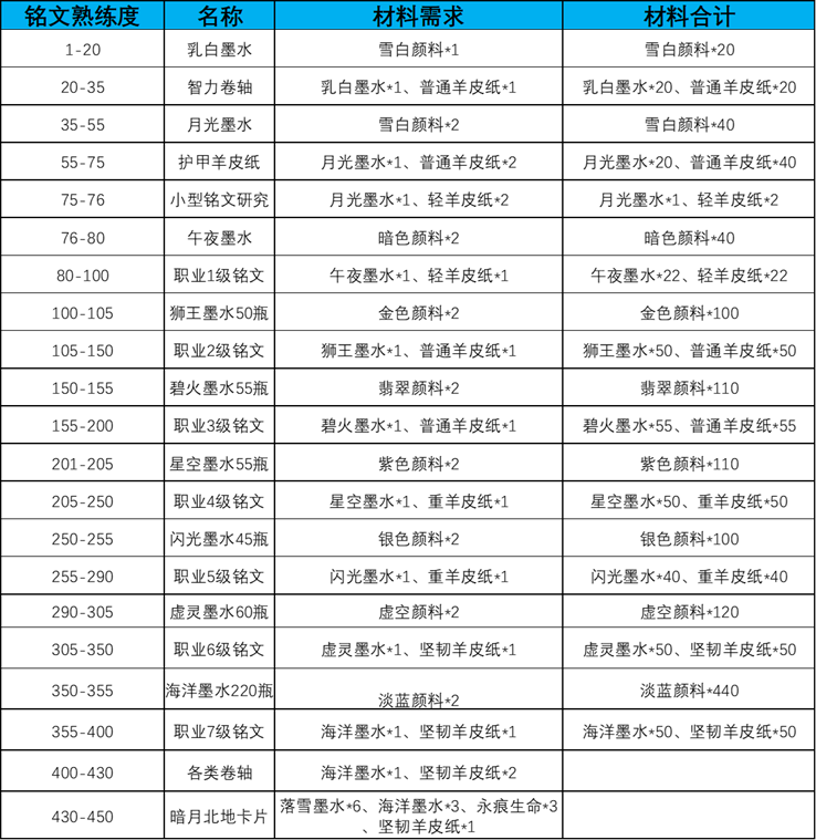 上一期为大家介绍了铭文专业的入门篇,大家应该了解了铭文专业中草药、颜料、墨水之间的关系了,在铭文专业中最重要的墨水材料,大家应该夜都知道怎么获取了,本期将为大家介绍铭文专业如何快速1-450熟练度。