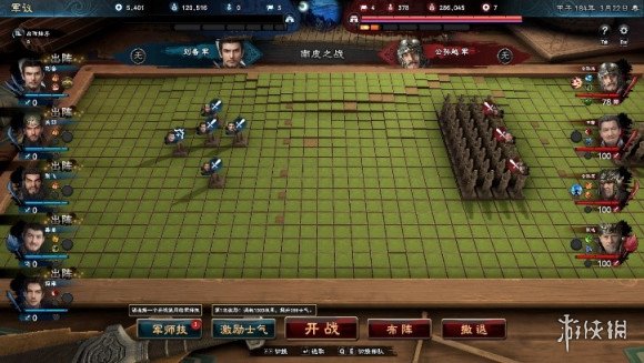 “激励士气”——消耗量草提升部队的士气,士气能带来额外的攻击加成,士兵数量越多消耗的粮草越多。