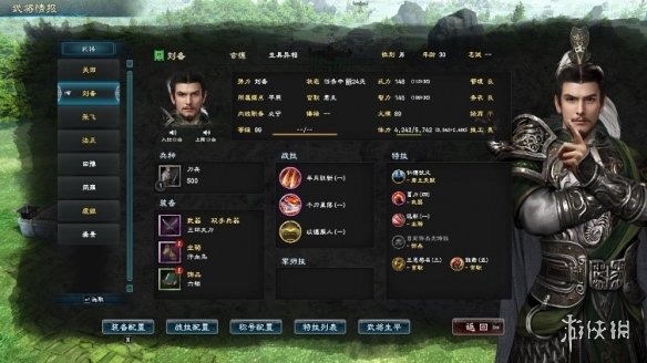 “特技”——就是被动技能,分为君主天赋、天生、武器、坐骑、饰品、官职特技六种。君主天赋和天生特技为武将先天拥有。其余的特技可以通过装备对应的武器、官职等方式获得。