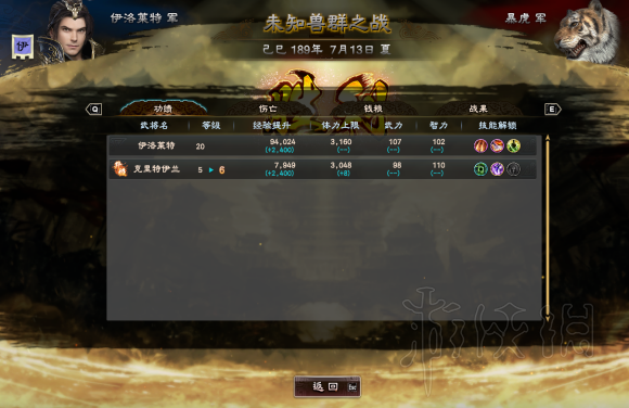 第二波:20级君主前期12技能清兵,然后打大老虎的时候副将去抗,自己卡距离放技能耗血,如果有治疗,难度会降低。