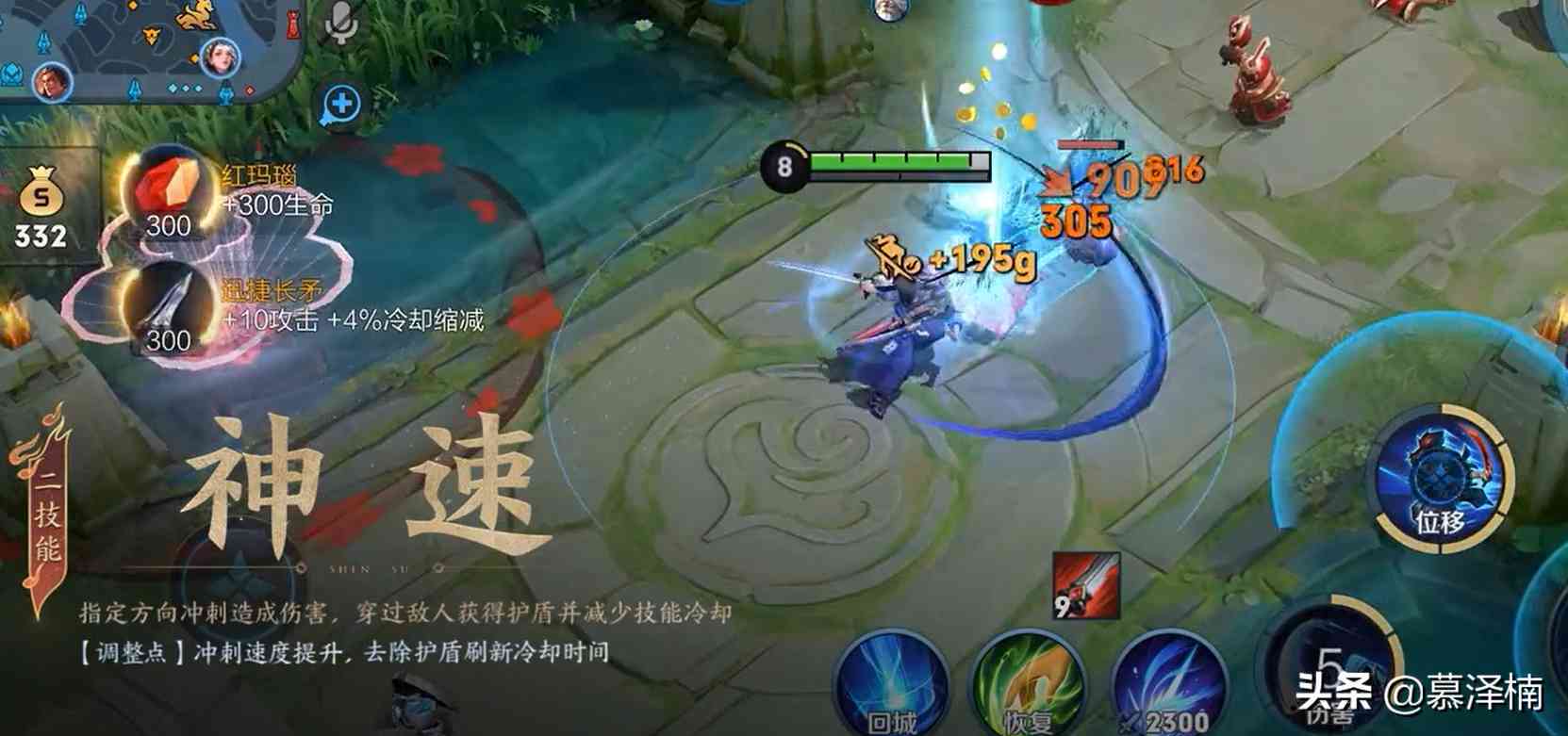 二技能:宫本武藏向前冲刺,对路径上的敌人造成伤害,若命中敌人将获得护盾并减少50%冷却时间。