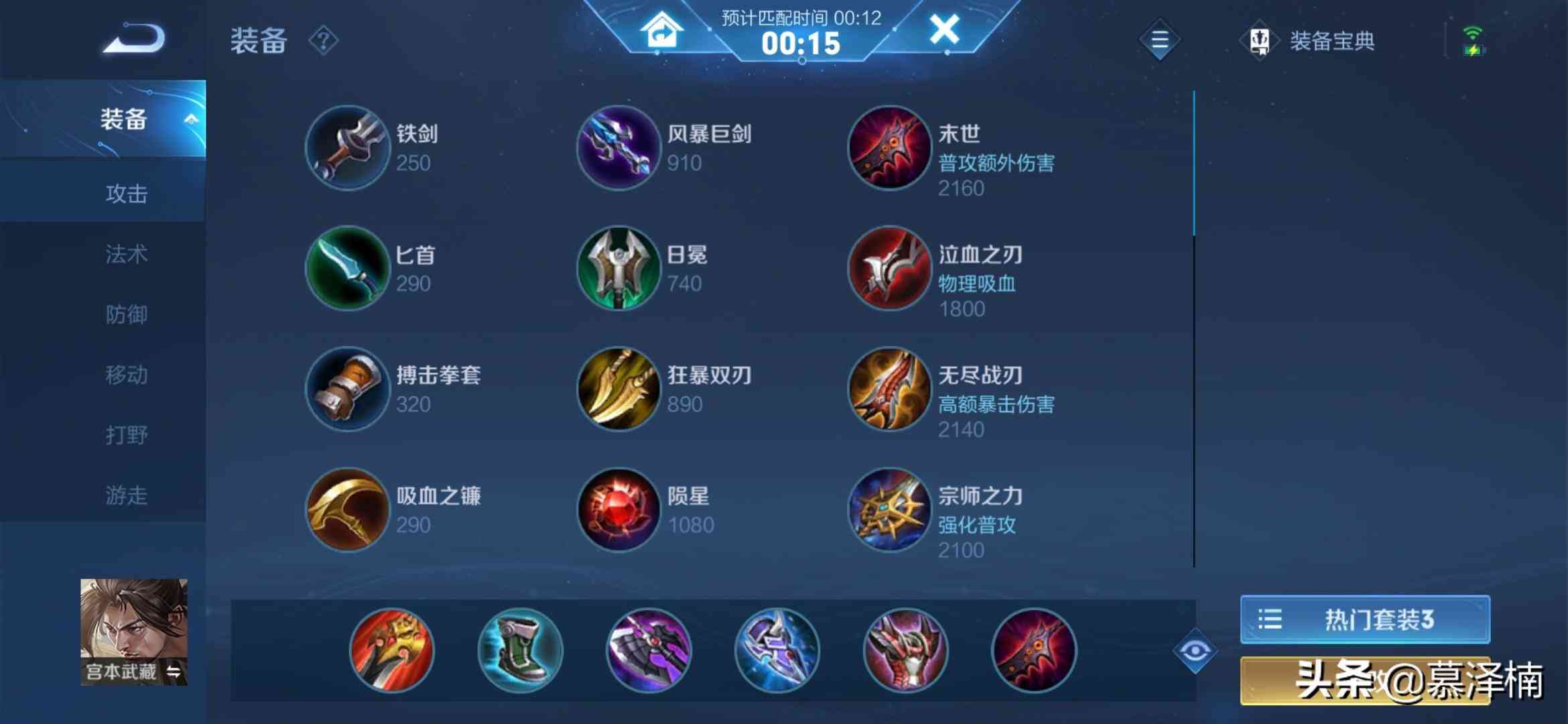 这套出装是根据全能王-孤影学的,基本上打打同水准的对局是没有什么问题,如果大家觉得容错率太低了,一打团就死可以考虑把最后一件换成复活甲或者永夜守护也是可以,大家可以稍作调整,但最核心的还是暗影战斧和冰痕之握,如果觉得伤害太低就换成宗师之力,这两件装备可以很好的保证宫本前中期的输出能力~