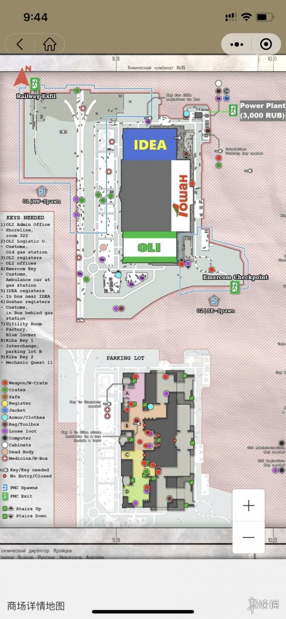 商场/立交桥这张地图一共有三个撤离点,分别是位于地图左上的Railway Exfil,右下角的Emercom Checkpoint和右上角的Power station。其中右上角的Power Station是随机开放的检查点并且需要交3000卢布才能撤离。