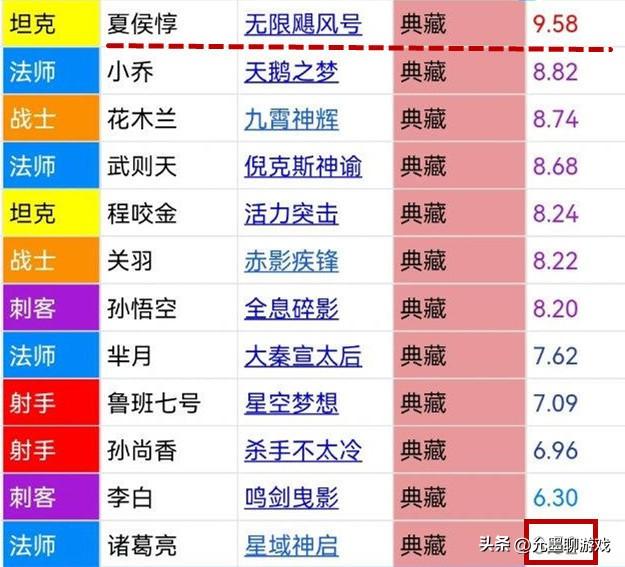 最近有网友晒出了一份,12款典藏皮肤评分表,无限飓风号9.58分,星域神启仅3.52分