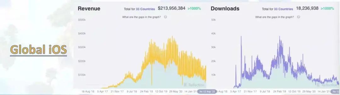 而巨大的活跃玩家基数与耐玩的游戏内容相结合,更是充分挖掘出了这款游戏的变现潜力。目前,通过售卖可用于解锁关卡和购买新元素的龙晶,《萌龙进化论》目前在全球33个国家与地区的收益总额已超3.73亿美元,其中iOS端的收入已共计突破2.13亿美元,安卓端的收入也已突破1.6亿美元。