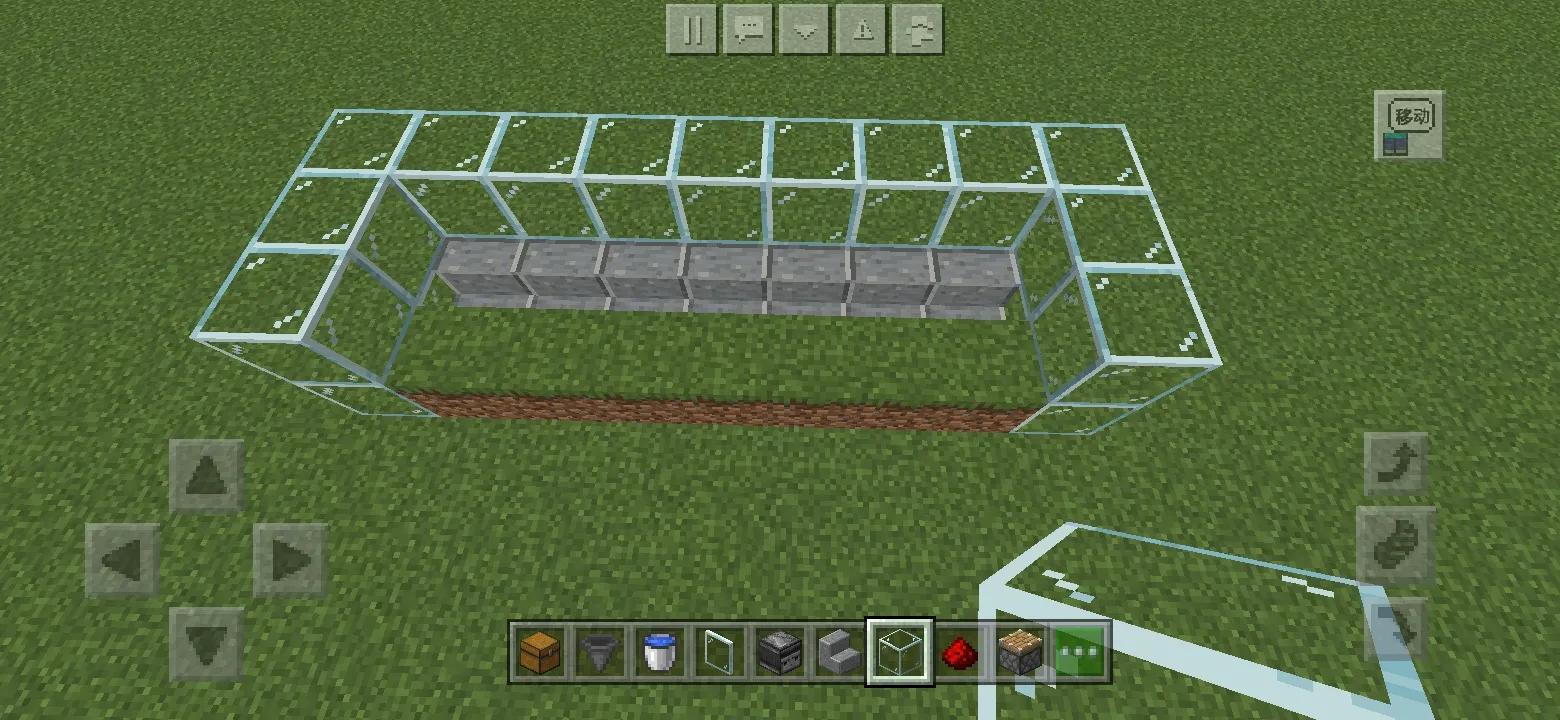 第二步,用玻璃将楼梯和泥土围住,并向上搭高一格。