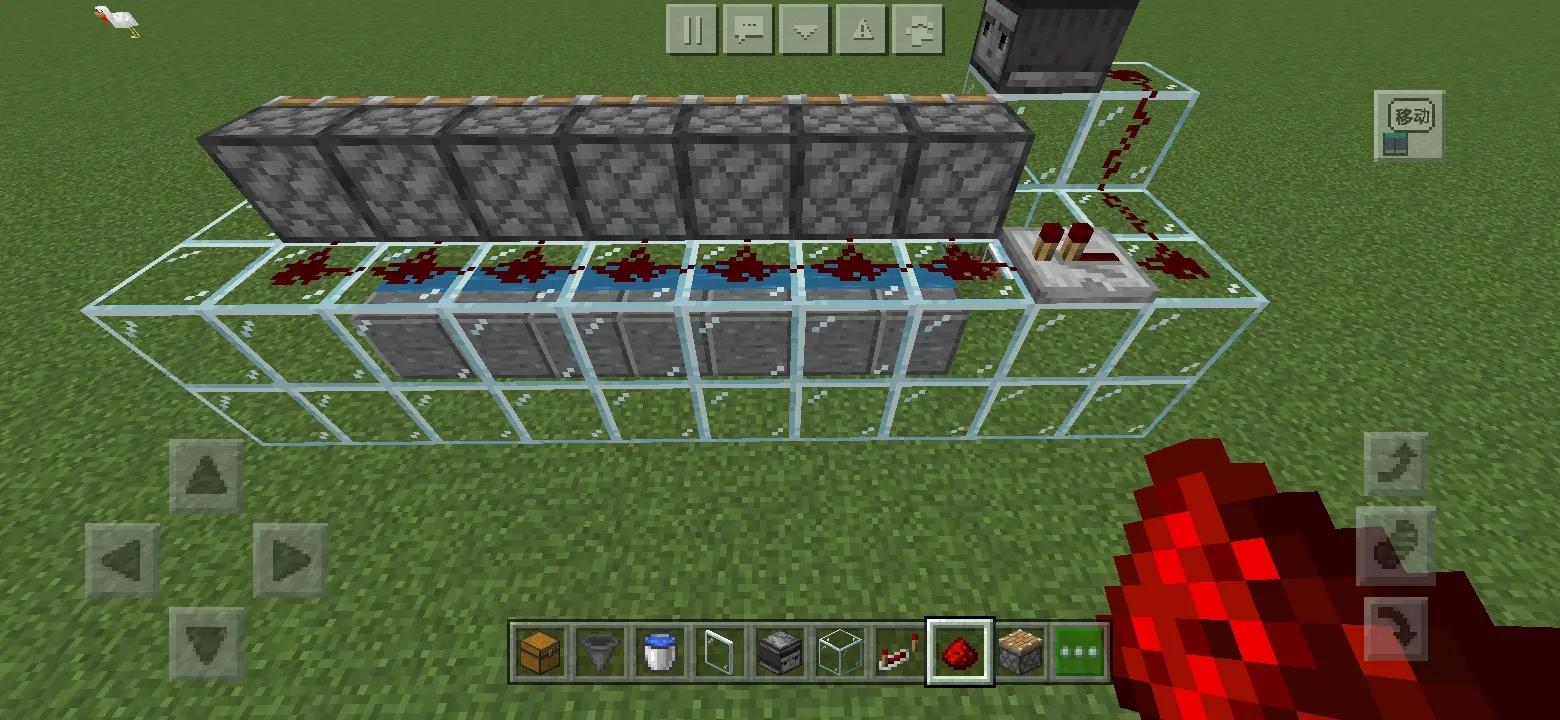 第四步,设置活塞,侦测器,活塞面朝楼梯有水的方向,侦测器也面朝楼梯,并铺设红石线路。