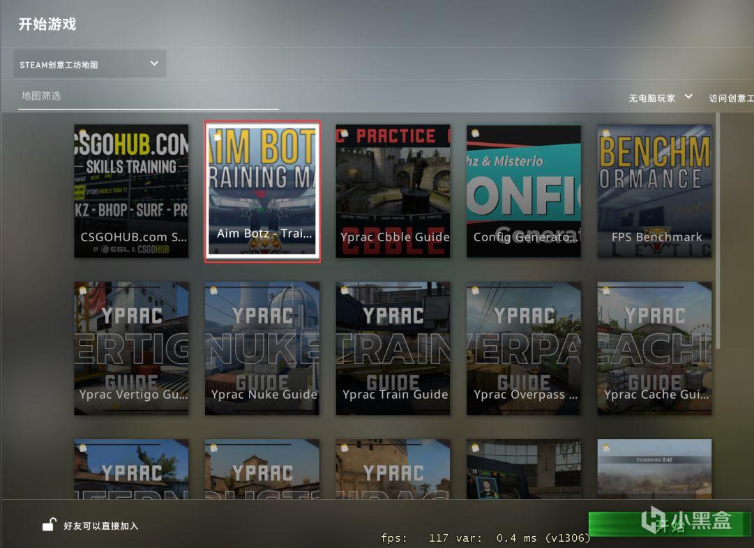这里推荐用“Aim Botz”这个地图,因为他比较经典(啥也没有)