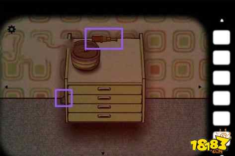 2、我们依然先是默认的面对有大型钟的这面,在盆栽柜子上拿到望远镜,然后一直点击盆栽,就发现一直手深了出来,又缩了回去,可以拿到第一篇相框碎片。抽屉里面可以取得螺丝刀,火柴,柜子边上还有一片碎片,房间钟的上方也可以取得一片碎片。