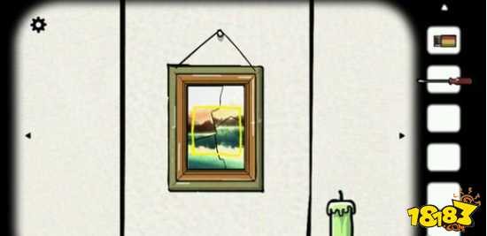 5、最后回到厨房,点近右下方的微波炉,用螺丝刀打开(这把螺丝刀是失传多年的万能螺丝刀),虾放进去,打开红色的开关后,用火柴点火,观赏微波炉,在打开的时候,微波炉里面一副风景画产生了,我们点进去,接着就能取得方块,接着就是回到火炉房间,把磁带团放炉子里,火柴点了,方块放回拼图后面,点击通关!