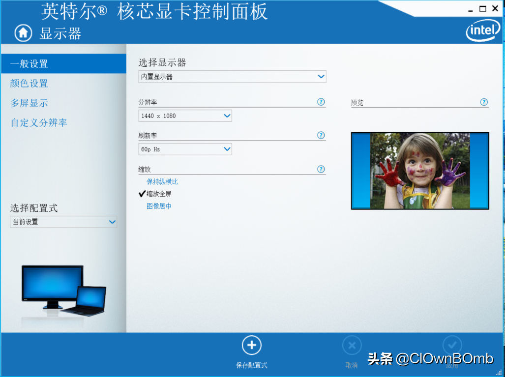 首先在英特尔显卡控制面板中的显示器界面,有自定义分辨率的选项,分辨率设置成1440*1080,最后添加即可