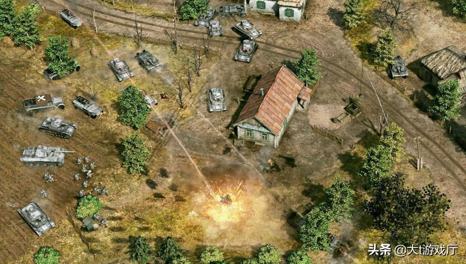 《突袭》系列是当年最棒的二战题材策略游戏,但它的玩法比较特殊,并不能像《红色警戒》和《星际争霸》那样,建造自己的基地和兵营,而一开场系统就会为玩家准备好现成的作战单位,包括几辆坦克和几个士兵,可以进行战役和遭遇战,但是战役的玩法比较单一,会为玩家设立一个目标,比如控制救援车去修理坦克,或控制工程车去修理桥梁,完成目标后就算过关,最好玩的遭遇战模式,可以控制自己的单位与敌对阵营进行战斗,通过当中的积分和累计分数,来为自己派遣更多的坦克和士兵,玩起来很有征服感。
