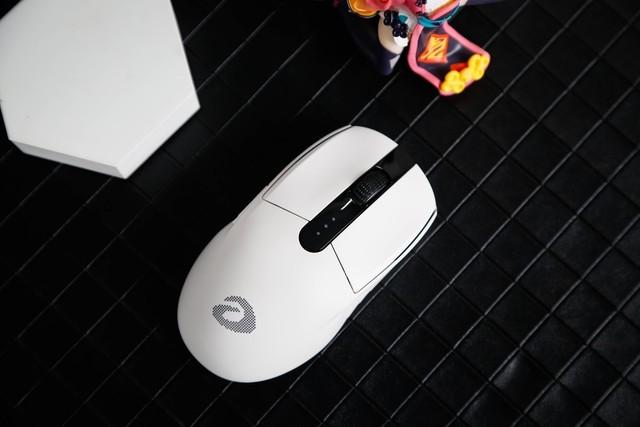 纯白极简的设计语音,也是达尔优A900的突出亮点之一,不同于常规暗黑的电竞外设,笔者手上这款皓月白的纯白质感,中间点缀着黑色的滚轮和持握部分的达尔优logo设计,皎洁中带有一丝高级,不经意间和热血电竞有一种相互碰撞,黑白交错的美感。
