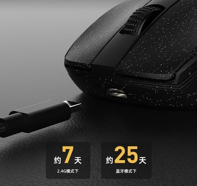 在回报率上,蓝牙模式下拥有125Hz左右的回报率,更加适合商务办公和常规游戏的需求;而有线/2.4G无线模式下高达1000Hz的回报率,则更适合对鼠标响应有着极致需求的电竞玩家。