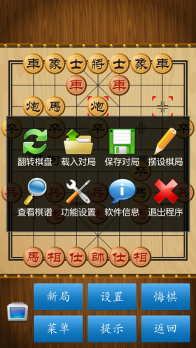 游戏虽然简单但是系统却比较丰富,有对弈、挑战、打谱、联网和联机供玩家选择。对弈就是玩家和系统对弈,玩家可根据自己的实力来选择系统的难度。挑战模式下又分为四种模式,而小编认为这种模式也是更有利于玩家学习更多套路的地方,因为其中包含了杀法大全、路边摊模式、雅趣模式和自定义模式。而打谱模式需要玩家从网上下载一些棋谱放入游戏中和系统对弈,帮助玩家研究对战的棋谱套路。联机模式下玩家可以通过蓝牙或是WIFI和自己的好友来上一局。