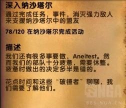 纳沙塔尔的主线在做完新地图的引导任务后,联盟阿珍,部落阿强会给你一个任务,让你完成120个纳沙塔尔的活动。