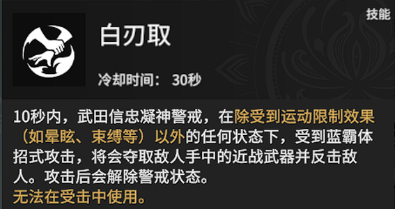 武田信忠小技能空手夺白刃被动