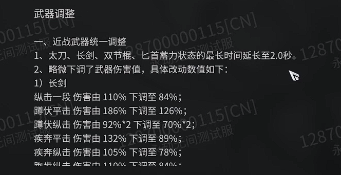 3.近战武器伤害普遍下调