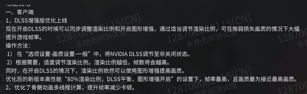 千呼万唤的帧数优化终于来了!更新后的DLSS优化技术更加强大,低配置玩家福音!同时骨骼动画也有所优化,再也不当30帧的电竞玩家。