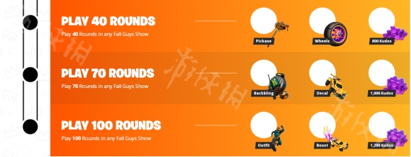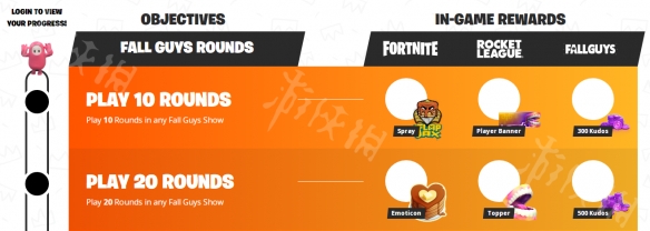 你无需同时玩堡垒之夜或火箭联盟或糖豆人终极淘汰赛即可在所有三款游戏中获得奖励。只要你参与糖豆人终极淘汰赛中的皇冠之争活动,就算你既不玩堡垒之夜也不玩火箭联盟你仍然会在糖豆人终极淘汰赛、堡垒之夜和火箭联盟三款游戏中获得奖励。
