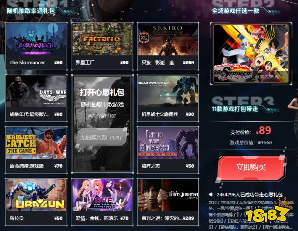 2.买一送十活动可以全场任选一款游戏,并且随机赠送十款游戏打包购买只需要89元!
