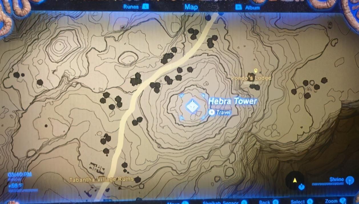 滚雪球地址在海不拉之塔下方。可以看到是大地图的左上角,出汗送到这个塔后直接用滑翔机飞下去,就能在上图标记处找到滚雪球的位置。