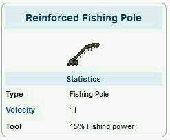 2.强力钓竿:15%钓力,用8个铁/铅锭在铁砧上制作。其实还是没有多大用处,不过大前期可以用用。