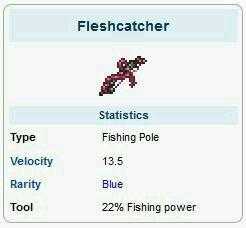 3和4.血肉捕捉者/灵魂垂钓者:22%/20%钓力,用8个血金/魔金锭在铁砧上制作。在获得坐鸭钓竿前比较好的钓竿,不过既然都能做这两个钓竿了,那么经济实力足够买坐鸭钓竿了。