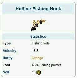 8.热力钓竿:45%钓力,肉山后在渔夫处完成25个任务后小概率获得,可以在岩浆中钓鱼,真正有耐心拿到这个钓竿的人很少很少,很稀有的钓竿