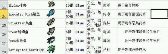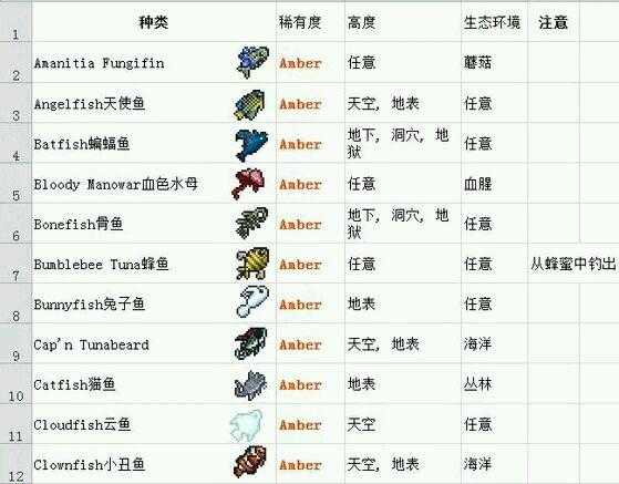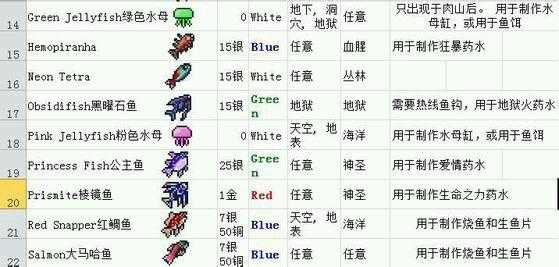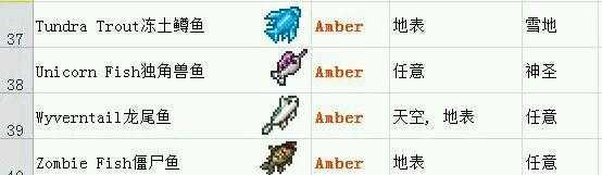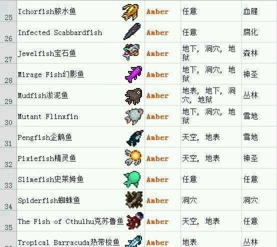 Tip:6.一共需要16种钓鱼场,来钓出所有的物品:地表:森林,海洋,丛林,腐地,血地,雪地,神圣地,蜂蜜。地下:洞穴,雪地,森林,神圣地,丛林,(神圣化/腐化/血化)雪地。空岛。任意层:岩浆,蘑菇地。