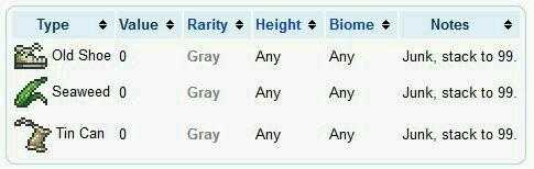下面是钓鱼所能够获得到的各种物品