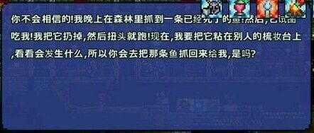 进入游戏,往两边的海洋走,在其中一边你可以看见一个人睡在那里,这个就是渔夫,在钓鱼里面是一个很重要的NPC。点击它就会出现对话(当然第一次对话没用),然后就可以接任务了。点第二回他就会给你一段话,让你去相应的环境里钓任务鱼。当然他不会明确告诉你去什么环境钓。在后面的楼层中楼主会详细介绍给大家每句话对应什么环境的。