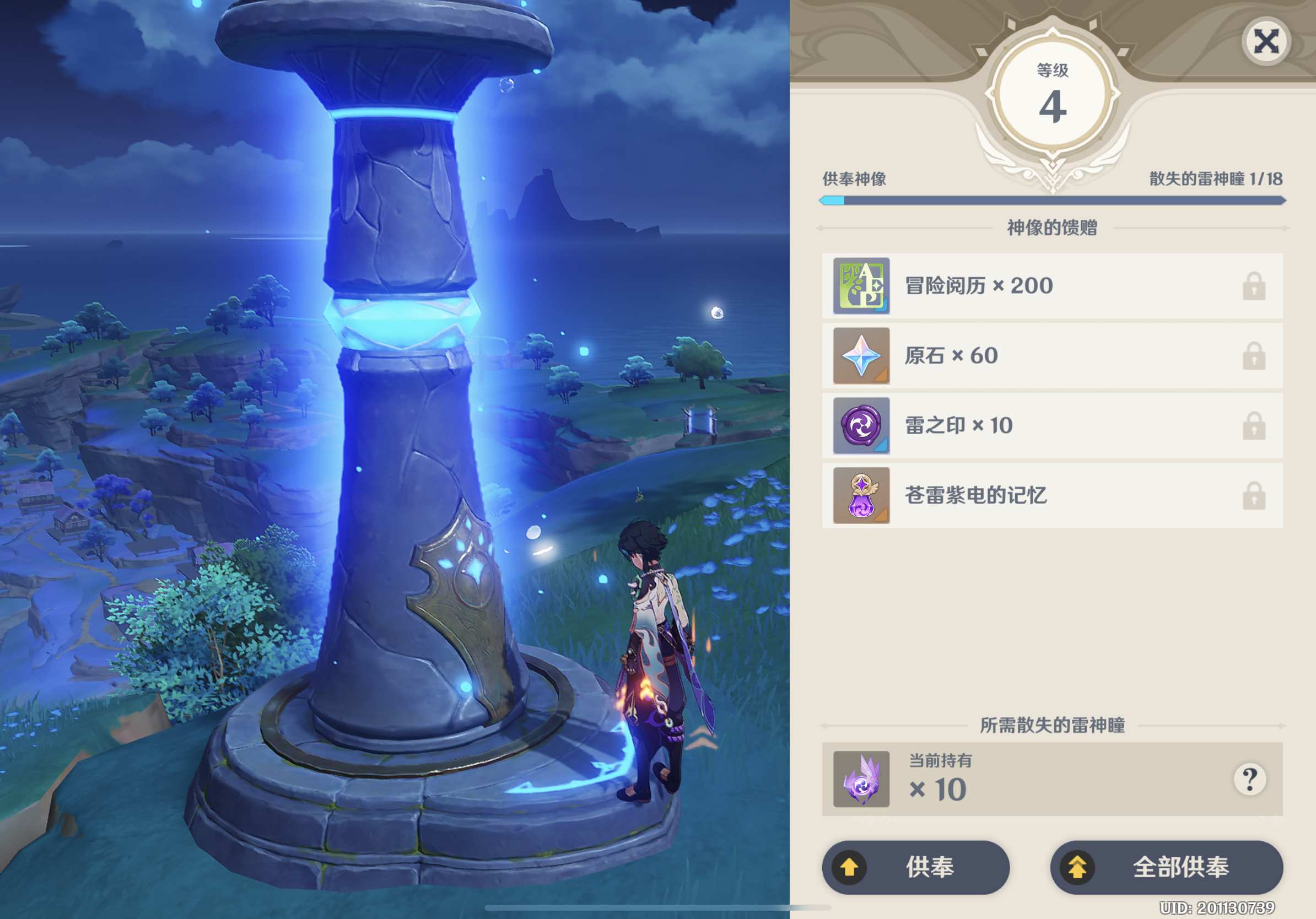这里说的是雷神瞳和草神瞳哦!虽然找神瞳是一件很费肝的事,但是找神瞳的奖励是不会让你失望的!每升一级神像,我们就可以得到60原石,同时还可以得到其他的奖励:主角的命之座,地灵龛的钥匙,七国徽印等等,算下来是一笔不错的收入呢!不要忘了,虽然有些主线或世界任务给得多,但是做完也要差不多半个钟到一个钟啊!如果完全没有找过神瞳,那花大概两个钟的时间,就可以获得600+的原石!效率高多了!