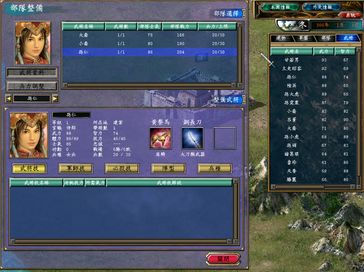 先来看看孙仁手下的将领,熟悉的有大小乔、孙大虎孙小虎。其余的就不认识了,孙仁手下有15位将领,加上孙仁16位,只有5位是熟悉的,占比31%。剩下的基本全是原创的,通过姓氏不难判断出,这些原创的女将都是东吴名将的女儿什么的。