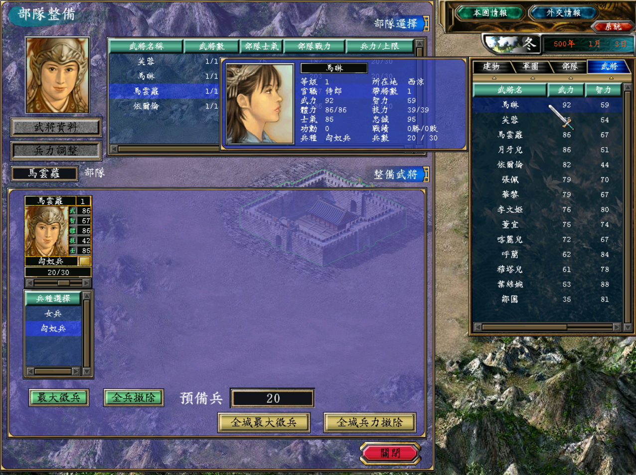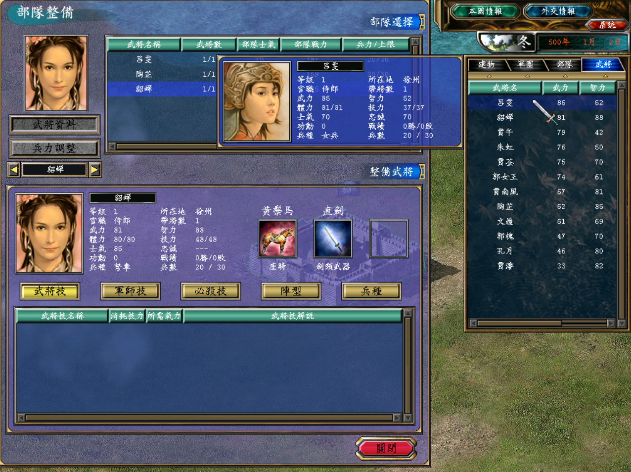 其中刘莹、乔乔、袁杏都是原创人物。马云萝应该是马云禄,这其实是虚构的,出自《反三国演义》,这样一看,可选君主中就差不多有一半都是虚构的。如果再算上祝融夫人和貂蝉这两位《三国演义》中的虚构人物,那就超过一半了。这里还是把《三国演义》中的当成是真实的吧,至少大家熟悉。