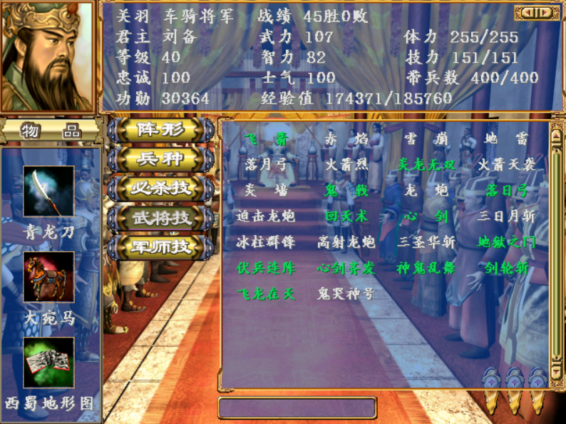 最喜欢的还是群英3中新增的必杀,一击、挑斩、气旋、大喝、乱舞、连刺、生擒、拖刀。这8个必杀有强有弱,其中乱舞和生擒的记忆最深,乱舞华丽,生擒的话是因为有时被敌方逼入绝境,突然来个生擒搞定敌方主角。不知道大家最喜欢哪个必杀?