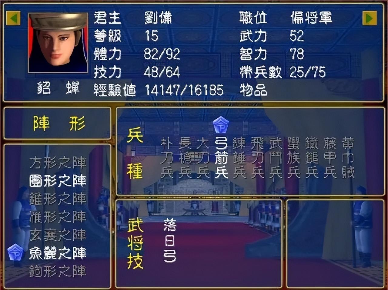 游戏中最稀缺的应该就是女性将领了,群英1中一共才4位女将,并且要通关一次才能见到,部分玩家甚至认为这款游戏就没有女将。这4位女将虽然不强,但只要玩家知道她们的存在,那都会想方设法的弄过来,留在城池当摆设那也会感到心情愉悦的。可惜的是,一共只有4位,想组成一个女性队伍都不能办到,这被当成最稀缺的应该不过分吧。