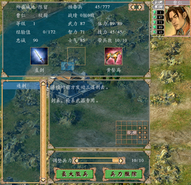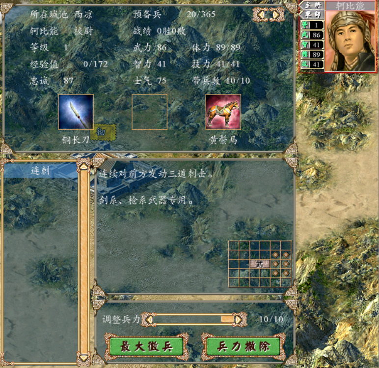 连刺在游戏中属于比较优秀的必杀,打将打兵都很好用,群英3已经很好地诠释了这一点,前期处于劣势时,往往可以凭借这种强力必杀扭转局面,只是这必杀几率一直是个迷,有时一场战斗必杀就没停过,有时却连一次都放不出来,可以说完全看脸。