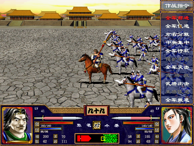 后期排兵布阵都是以引开对方兵马为目的,然后直接上去与武将对战,几秒钟就斩于马下。