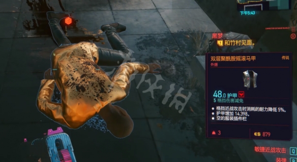 3、一直往前走,我们就能看到前方有一具尸体,调查尸体,就能获得【双层聚酰胺摇滚马甲】